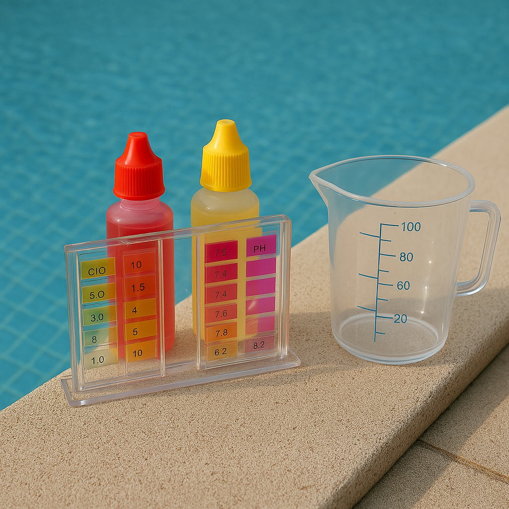 Medimos os parâmetros da água (cloro, pH e alcalinidade).